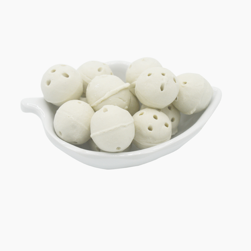 開孔瓷球是在惰性瓷球基礎(chǔ)上開發(fā)的新產(chǎn)品,它以球體直徑軸心進(jìn)行開孔,既具有如惰性瓷球那樣一定的機(jī)械強(qiáng)度、化學(xué)穩(wěn)定性和熱穩(wěn)定性,又增加了比表面積和空隙率,從而增加了物料的分散性和通量,降低了系統(tǒng)的阻力。開孔瓷球自投放市場(chǎng)以來(lái),廣泛應(yīng)用于石油、化工和天然氣行業(yè)替代惰性瓷球作催化劑的覆蓋支撐填料。