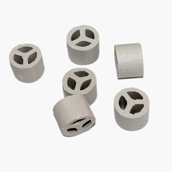 陶瓷三丫環(huán)填料是一種經(jīng)外觀獨(dú)特設(shè)計(jì)加工成的一種新型高效散堆填料,產(chǎn)品高徑比約為2:1,內(nèi)部設(shè)有一個(gè)或三個(gè)“Y”型隔板,這樣增大比表面積,提高了汽液分散性能,使汽液接觸更充分。三丫環(huán)填料是從階梯環(huán)、共鉅環(huán)、扁環(huán)、矩鞍環(huán)的基礎(chǔ)上以及在形狀、外觀和結(jié)構(gòu)綜合考慮,進(jìn)行取長補(bǔ)短而改進(jìn)的。