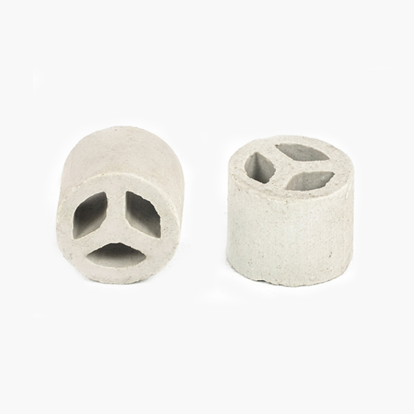 陶瓷三丫環(huán)填料是一種經(jīng)外觀獨(dú)特設(shè)計(jì)加工成的一種新型高效散堆填料,產(chǎn)品高徑比約為2:1,內(nèi)部設(shè)有一個(gè)或三個(gè)“Y”型隔板,這樣增大比表面積,提高了汽液分散性能,使汽液接觸更充分。三丫環(huán)填料是從階梯環(huán)、共鉅環(huán)、扁環(huán)、矩鞍環(huán)的基礎(chǔ)上以及在形狀、外觀和結(jié)構(gòu)綜合考慮,進(jìn)行取長補(bǔ)短而改進(jìn)的。